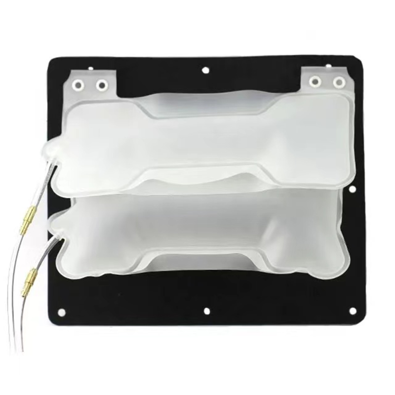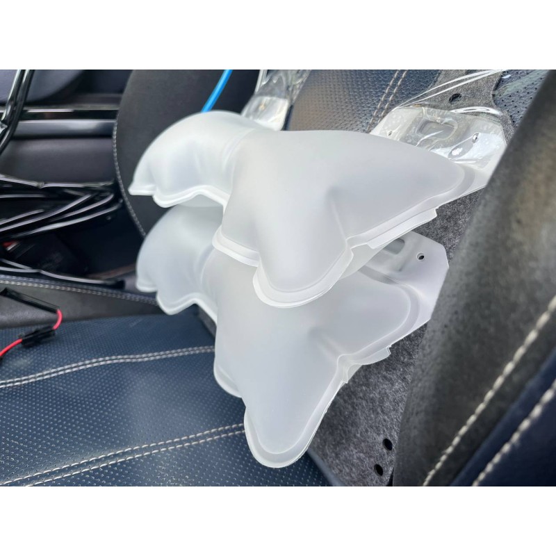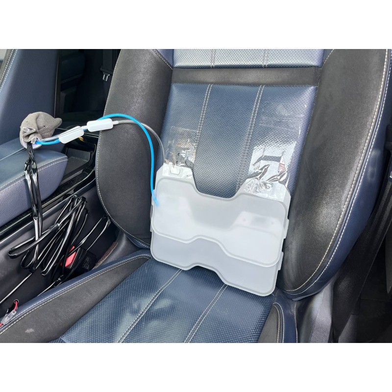 Пневматическая поясничная опора, 2 подушки надуваются сжатым воздухом в разных режимах, что позволяет регулировать положение опоры по ее выступу и по высоте.