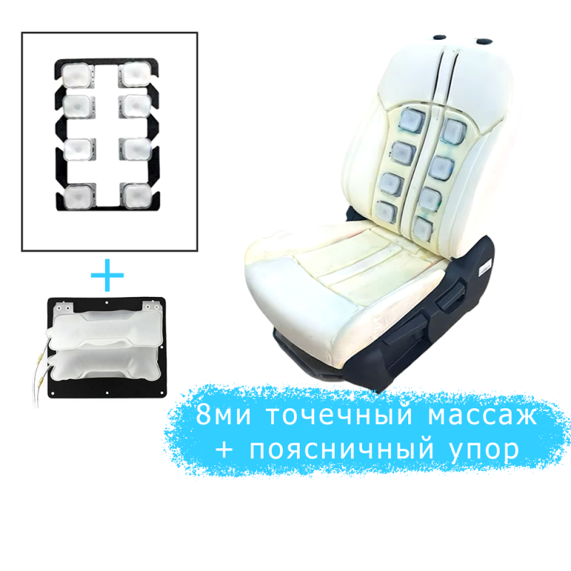 Пневматическая опора для автомобильного сиденья с массажем и 8ю подушками — это отличное решение для тех, кто проводит много времени за рулем. Она легко устанавливается и обеспечивает комфорт даже во время длительных поездок. Функция массажа поможет расслабиться и снять напряжение, а также обеспечит дополнительную поддержку для спины и шеи. Такой аксессуар станет отличным подарком для любого автолюбителя.Пневмоподушки изготавливаются из прочных материалов, чтобы не сдуваться под давлением. Установка массажной системы занимает около 3 часов. После доработки автомобильное кресло будет выглядеть так, как будто эта функция была предусмотрена производителем изначально.