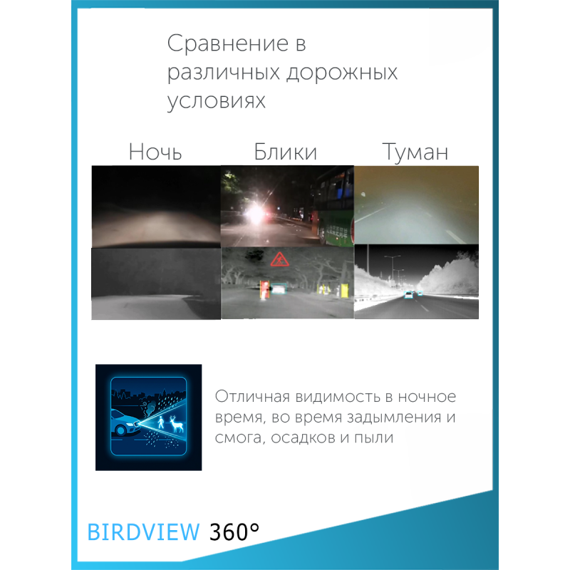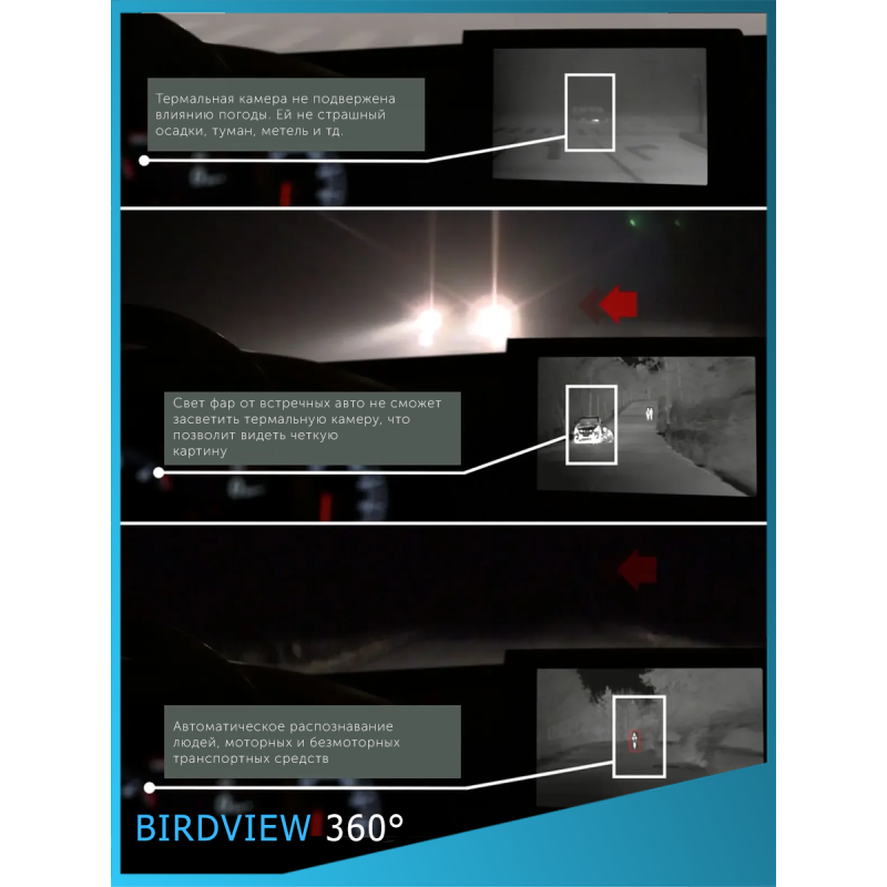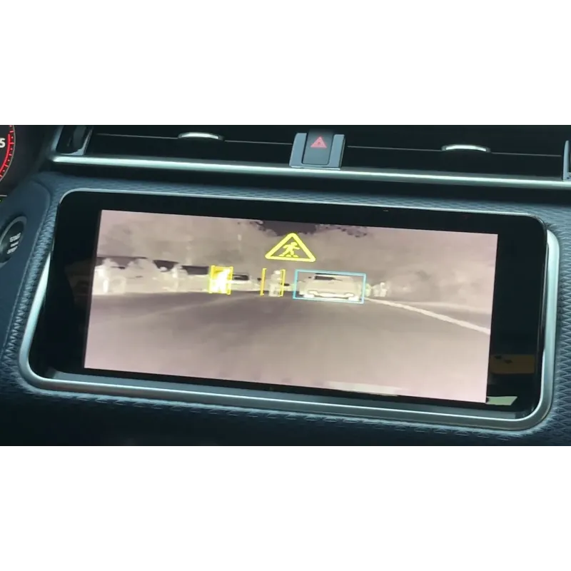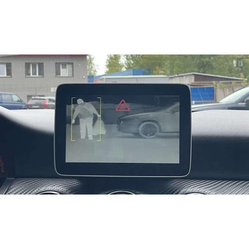 Тепловизионная система для штатного проводного Carplay с разрешением камеры 256×192p на автомобиль с модулем аналитики. Распознавание и выделение транспортных средств и пешеходов, визуальное и звуковое предупреждение о возможном столкновении. Функция автоматического обогрева, автоматическая компенсация затвора. Шумоподавление и улучшение качества выходного изображения.